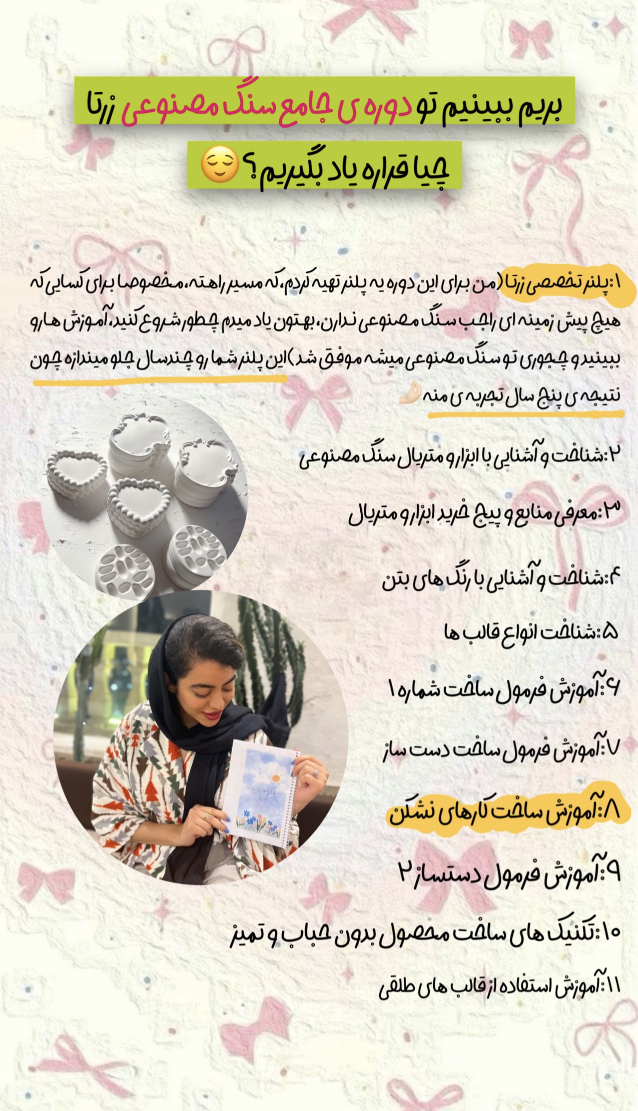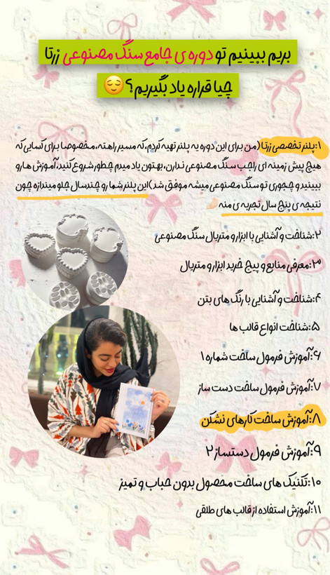 اگر دنبال کامل ترین و به روز ترین دوره ی آموزشی سنگ مصنوعی هستی، خیلی خوش شانسی که زرتا رو داری...هنرجوهای زرتا اعتقاد دارن که این دوره کامل ترین دوره ی سنگ مصنوعی که دیدن و همه چی به زبان خیلی ساده آموزش داده شده و با پشتیبانی دائمی که داره دیگه سوالی بی جواب نمیمونه و پیشرفت خیلی راحت و شیرینه